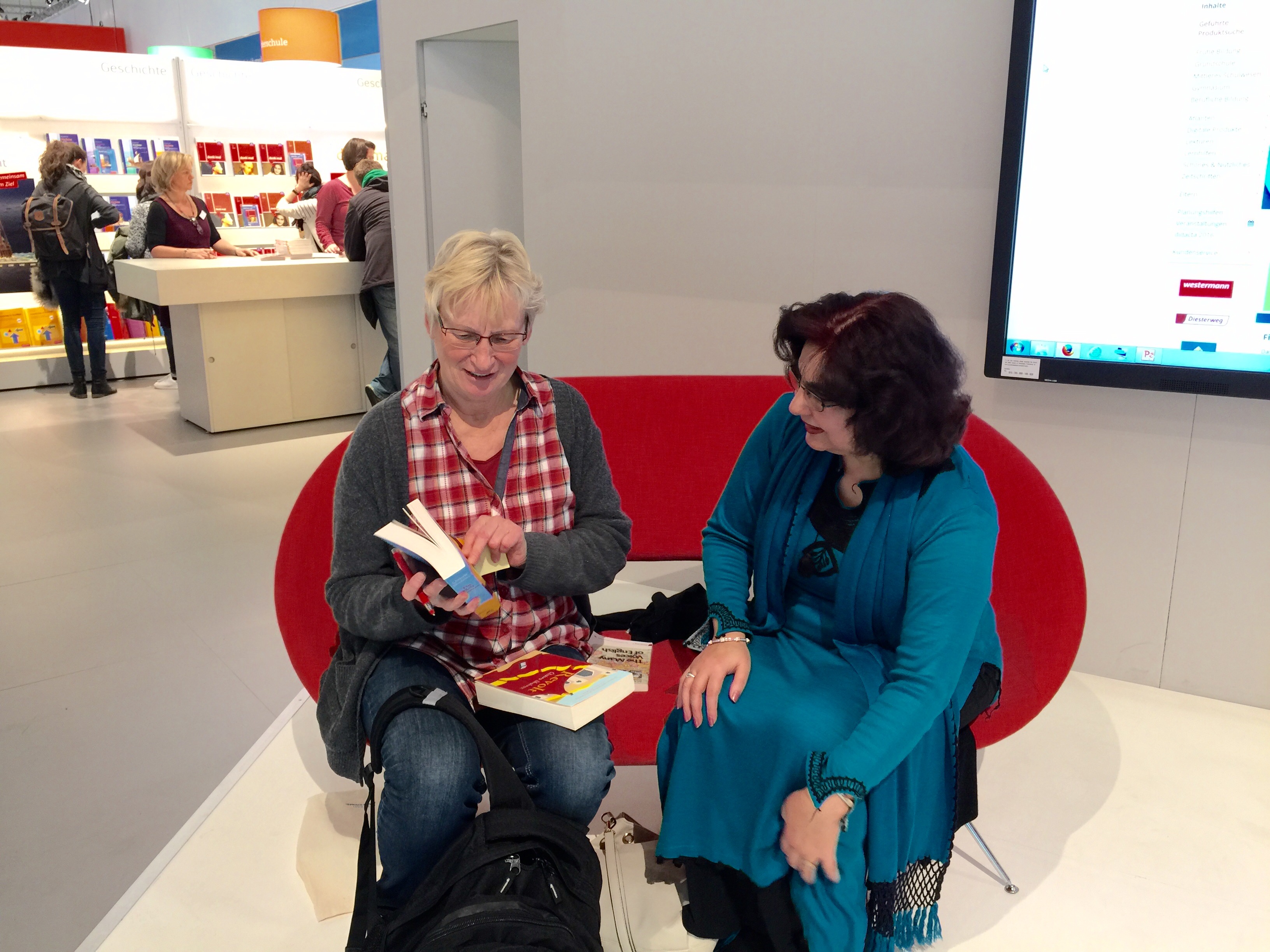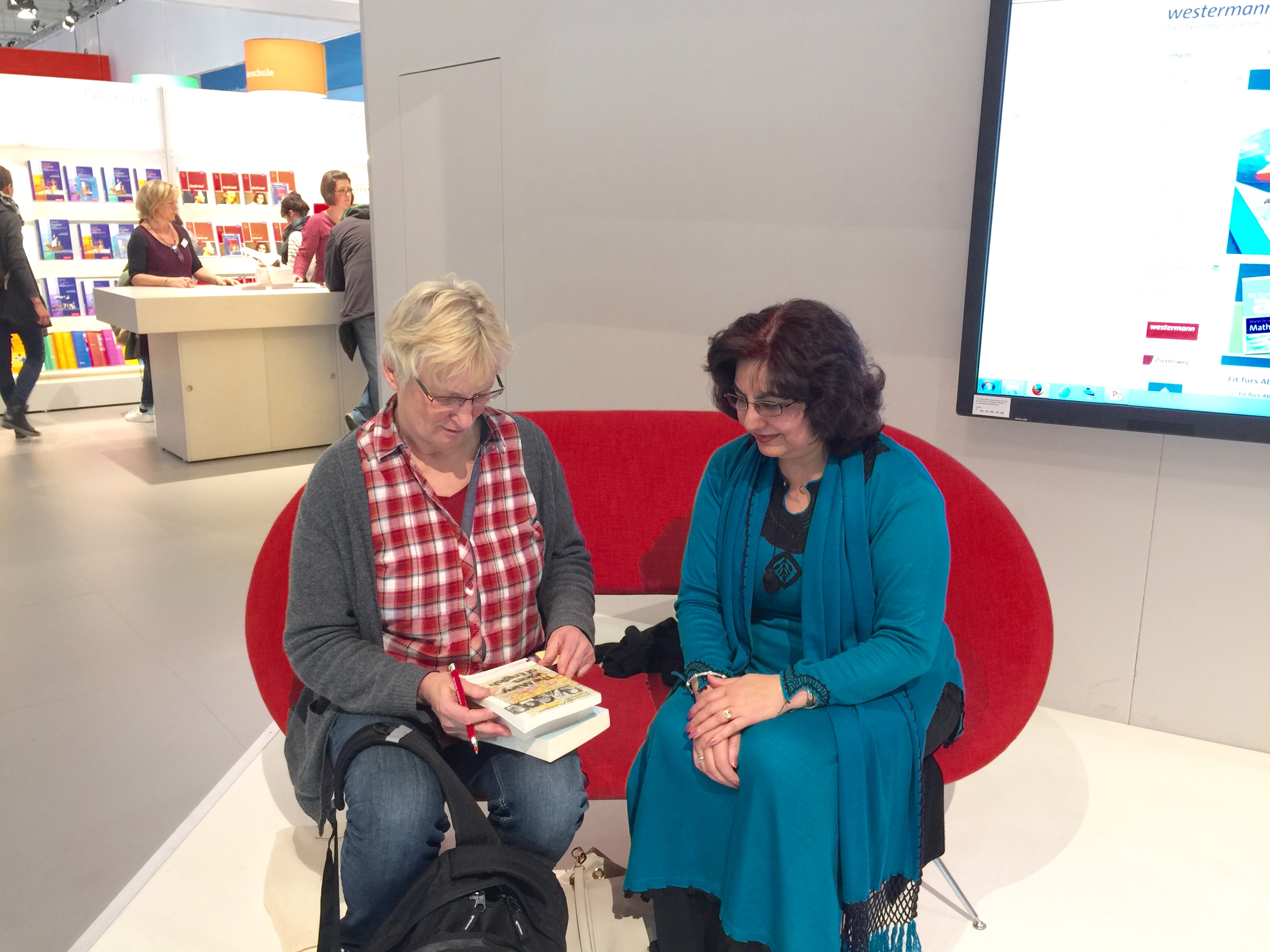 After my session on ‘ A Pair of Jeans’ with Ingrid Stritelzerberger- I had opportunity to speak to some fans – here discussing my novels – ‘The Holy Woman’ & ‘Revolt’ with one German teacher. Here are three of the books being used in German schools which includes my story ‘A Pair of Jeans’.
