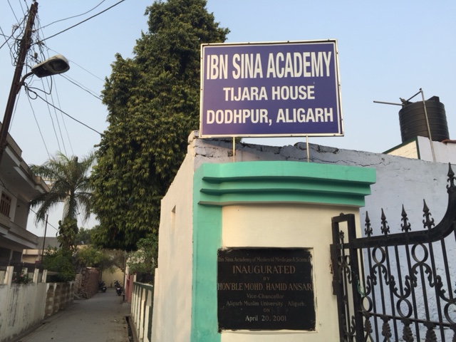 Aligarh Muslim University arranged a visit for me to a local museum during my recent tour. Located in the middle of a bustling bazaar, the Ibn Sina Academy of Medieval Medicine and Science is run by an illustrious family of ‘Hakims’, doctors, devoted to medieval and modern medicine and Muslim Scientists. The museum and academy is named in honour of the famous Muslim scientist Ibn Sina (980-1037 AD, who is better known in the West as Avicenna.) I was fascinated and delighted to be taken on a personal tour by the proprietor, Dr. Syed Ziaur Rahman (pictured with me), whose father founded this academy. Later, I enjoyed warm hospitality in their home, downstairs, and heard wonderful stories about their family links to Iran by his lovely wife, who is half Iranian.