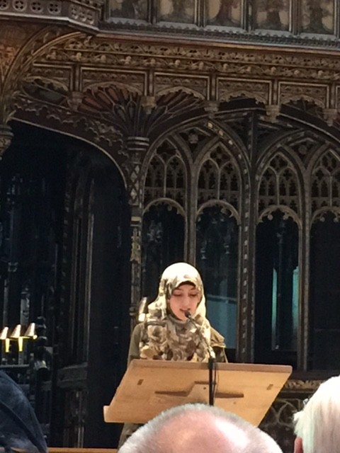 Of course we heard from the Bosnians who had suffered the atrocities and still live with their loss and pain. They included my dear friends, whom I met when they first arrived in England fleeing from the atrocities in Bosnia. Dudiya Zilic, a dear sister and former student of mine (who also appears in my novel The Holy Woman) spoke movingly about her experience of the massacre and of being a Muslim in Bosnia. Her niece, Nabeela (whose lovely mother, Nazira, was heavily pregnant with her when she fled Bosnia to arrive in Manchester as a refugee), spoke about her experience of living with this genocide past. Now studying criminology, she wants learn to understand the minds of people who commit such inhumane acts.
