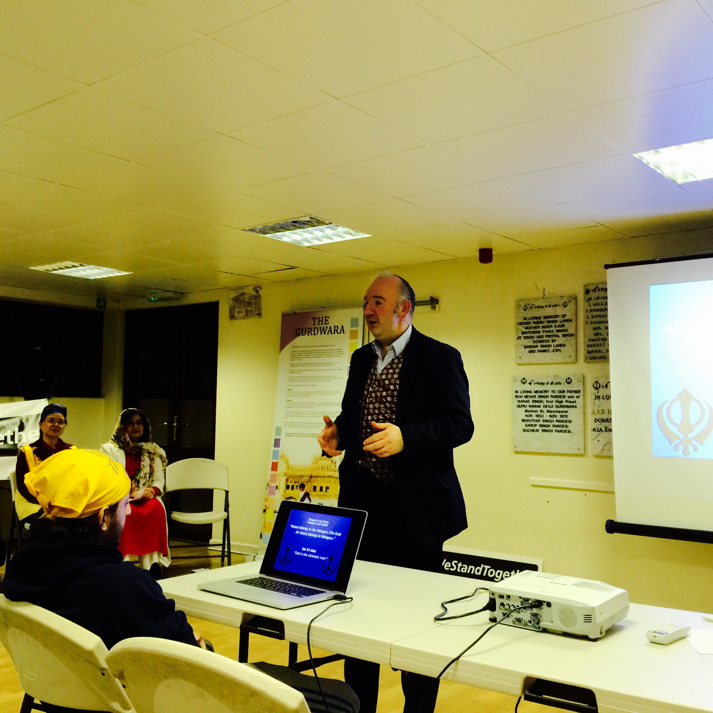 We had speakers from all faiths sharing their views and offering their well wishes. I was one of the speakers representing the Muslim community as well as faith network 4 Manchester as its vice chair and trustee of Manchester multi faith center. I spoke about the bravery of the Sikh people and the marvelous hospitality as well as our commonalities of sharing a similar heritage from Punjab from the sub continent of India for example its food and culture. Hani Singh gave us a very interesting presentation on Sikh faith and Bonita Kaur.