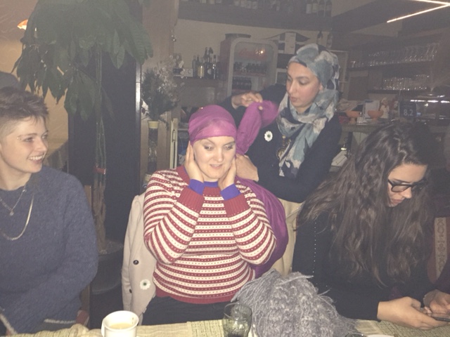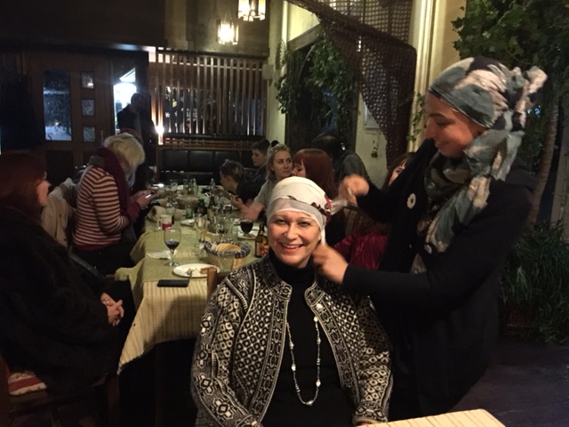 In the evening we had wonderful dinner with choir, singing and trying our scarfs fashion designs.