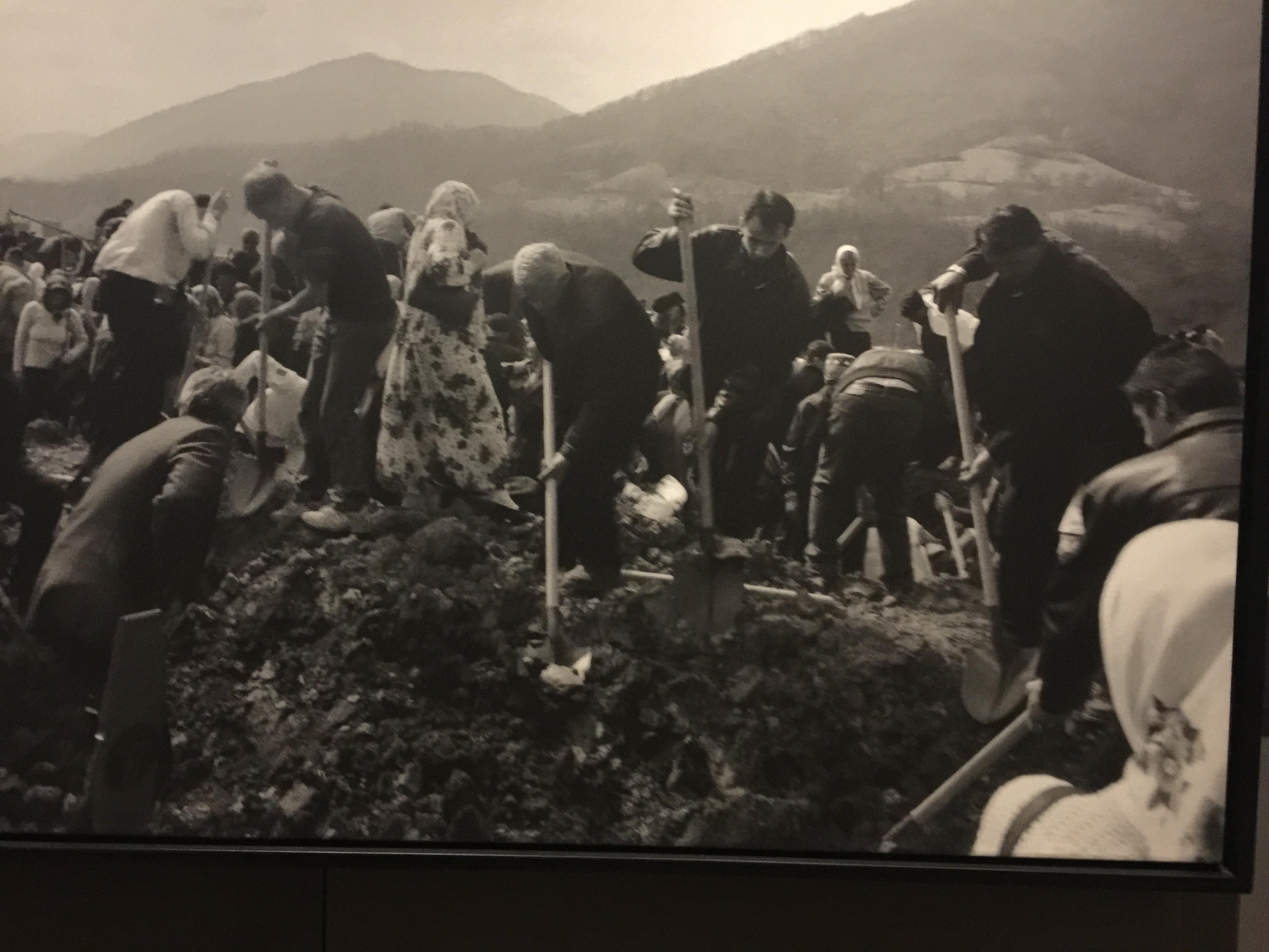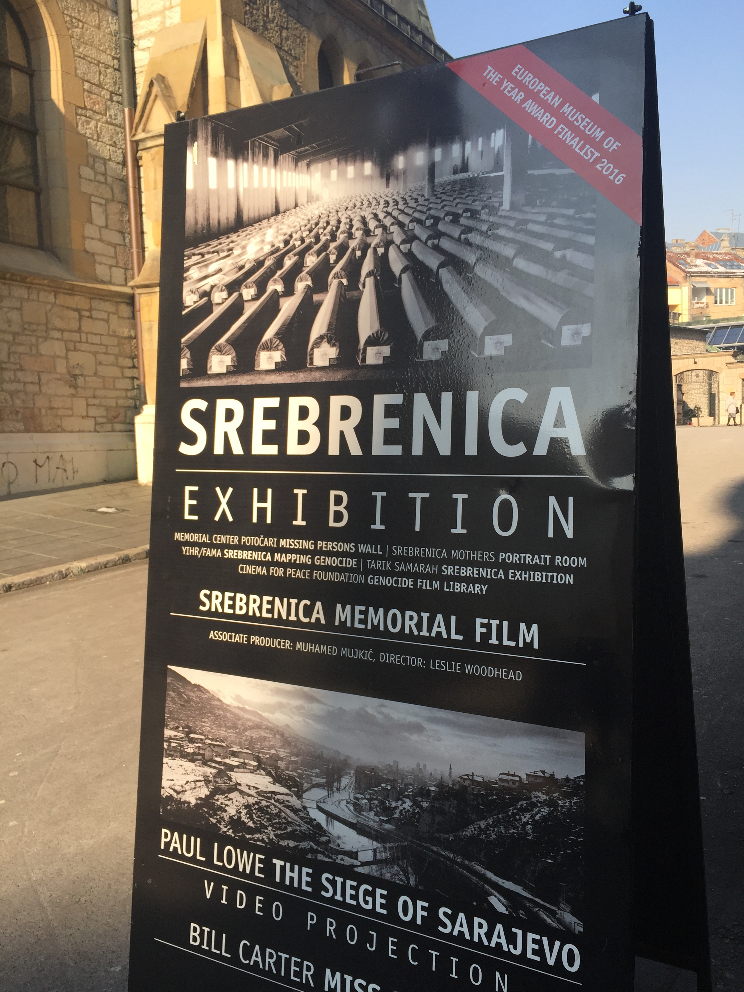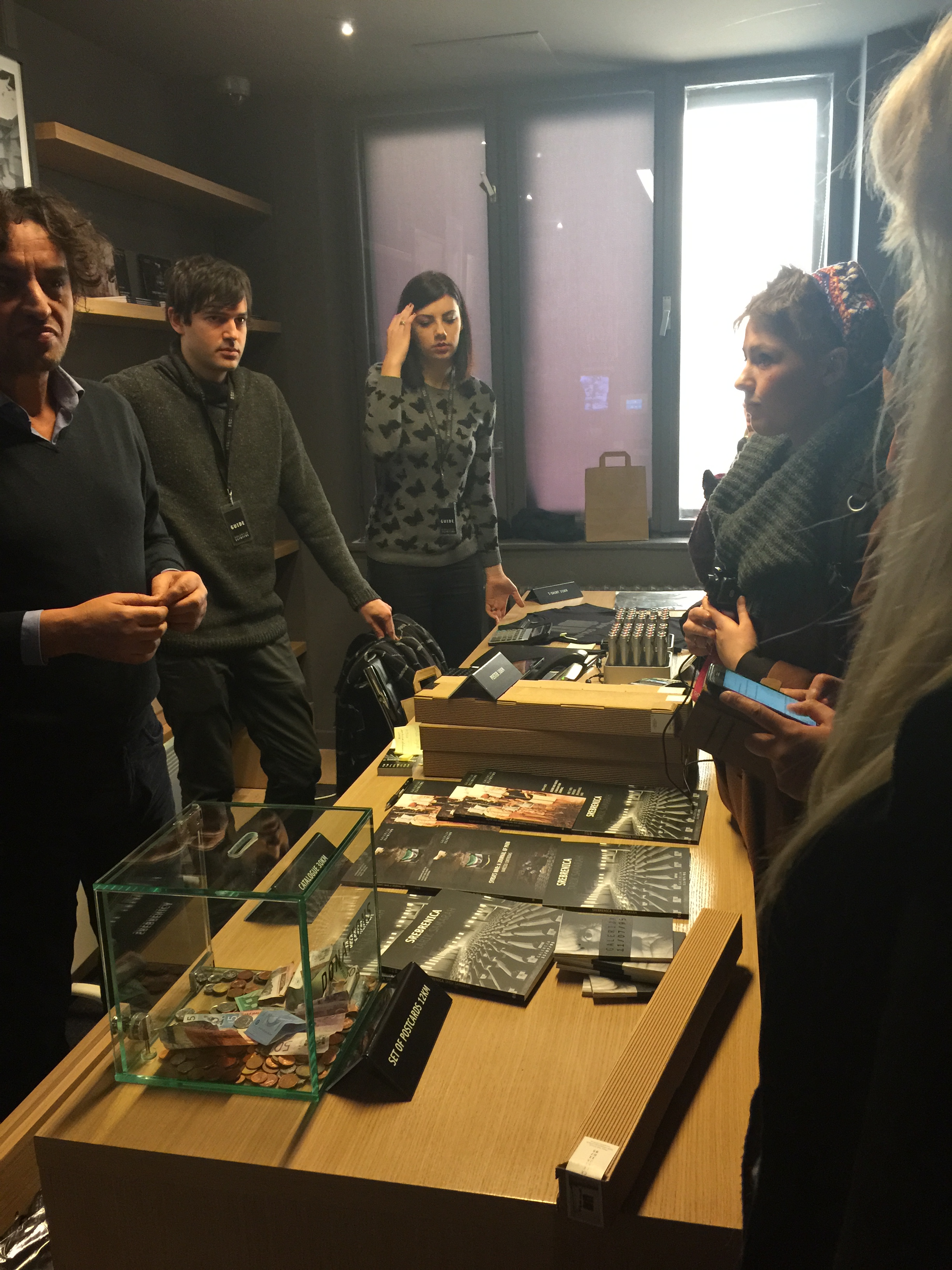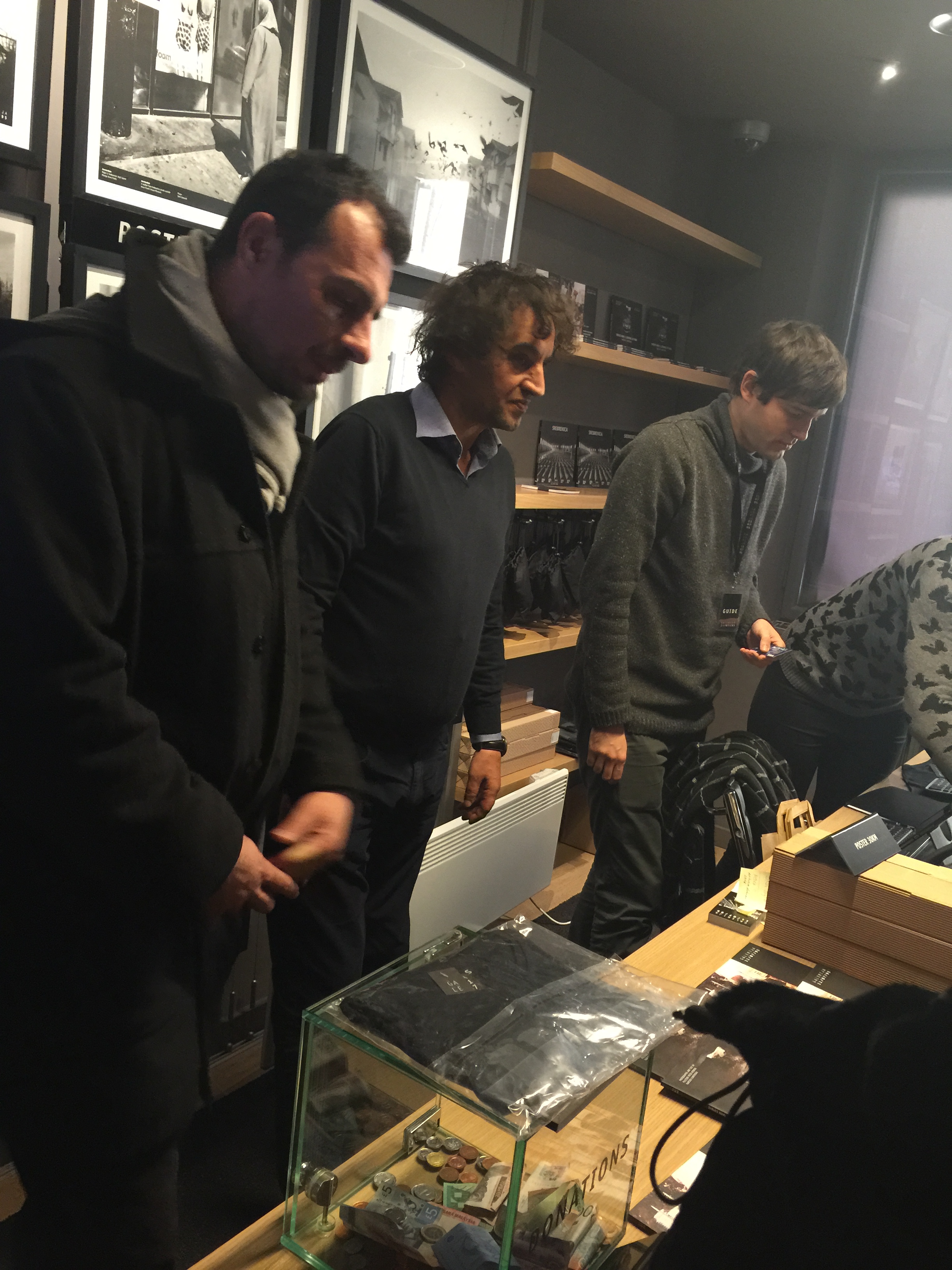 What an experience seeing the pictures which tell their own story and cry out to us ‘Please Remember Us’. All of us wept and wept as we passed the pictures, posters & watched the harrowing film of men & young boys being led to their death. We had the pleasure of meeting Tarik the founder and owner of this special gallery. He is the one with the curly hair standing next to Resad.